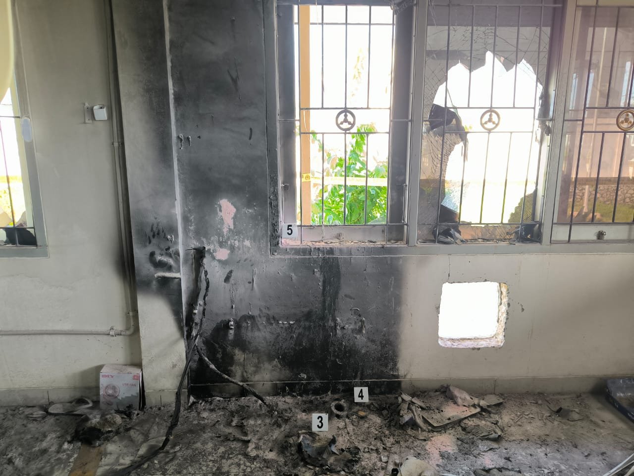 Adapun objek yang terbakar meliputi arsip pegawai, meja kerja, AC, lemari, dan kaca jendela dengan kerugian ditaksir mencapai Rp15.000.000 hingga Rp30.000.000. Pada kegiatan tersebut, tim turut mengamankan sejumlah barang bukti berupa abu sisa kebakaran, swab lelehan, MCB 10A, dan stop kontak beserta instalasi.
