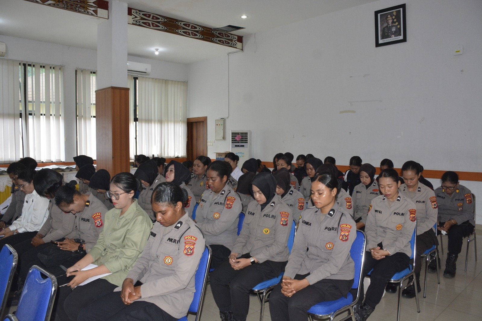 Hadir dalam kegiatan tersebut Pakor Polwan Polda Papua Kompol Dorthea M. Ansanai, S.Pd, Kasubbid PID Bid Humas Polda Papua Kompol Nurjanah, S.Sos., M.M, Kasubbag Renmin SPN Polda Papua Kompol Deti Irawati, S.Sos, serta para perwira dan bintara Polwan Polda Papua.