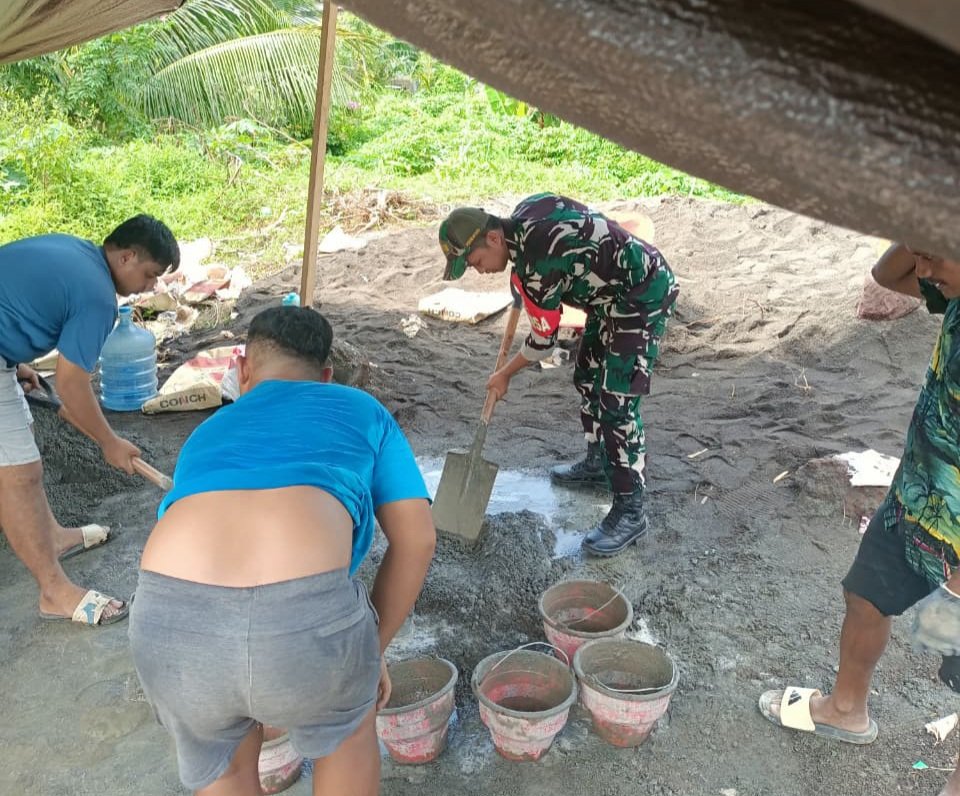 Demi Segera Terwujudnya Jembatan Beton Garuda, Warga dan Babinsa Turun Bantu Proses Pekerjaan