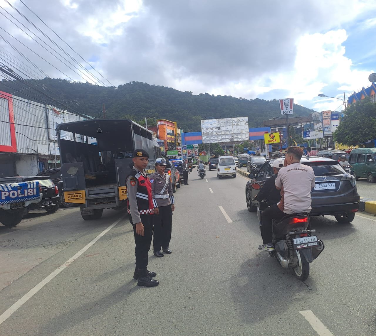 Papua – Personil Ops Ketupat Cartenz 2025 Polda Papua di Pimpin Iptu Toni Alua Perwira Pengendali(Padal) Regu III Lakukan Patroli Rutin seusai hari raya idul fitri pada tempat-tempat wisata maupun rawan kamtibmas di Kota Jayapura, Kamis (3/4/2025).