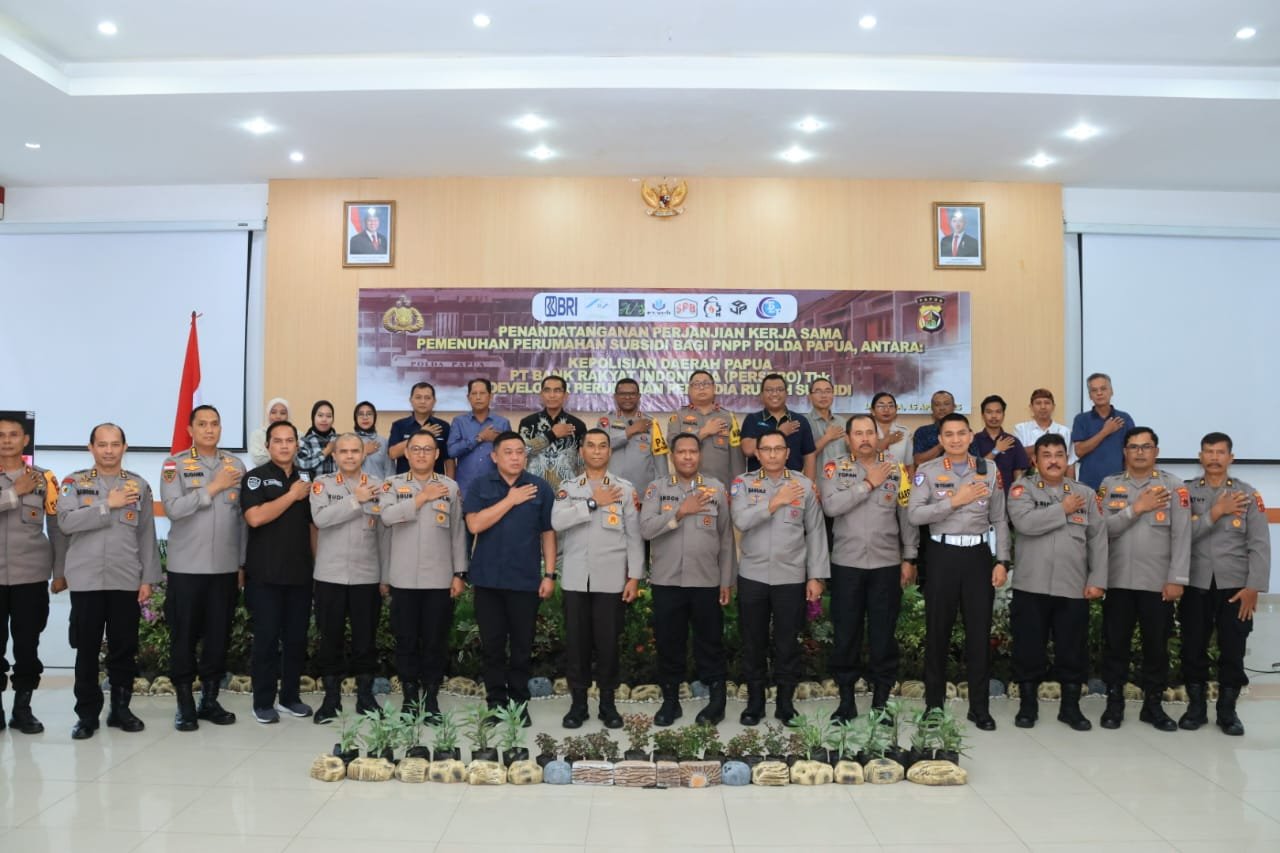 Papua – Kapolda Papua, Irjen Pol Patrige Renwarin, S.H., M.Si., telah usai memimpin Penandatanganan Perjanjian Kerja sama Pemenuhan Perumahan Subsidi bagi Pegawai Negeri Pada Polri (PNPP) Polda Papua, antara Kepolisian Daerah Papua, PT Bank Rakyat Indonesia, dan Developer Perumahan Penyedia Rumah Subsidi, pada Selasa (15/04/25).