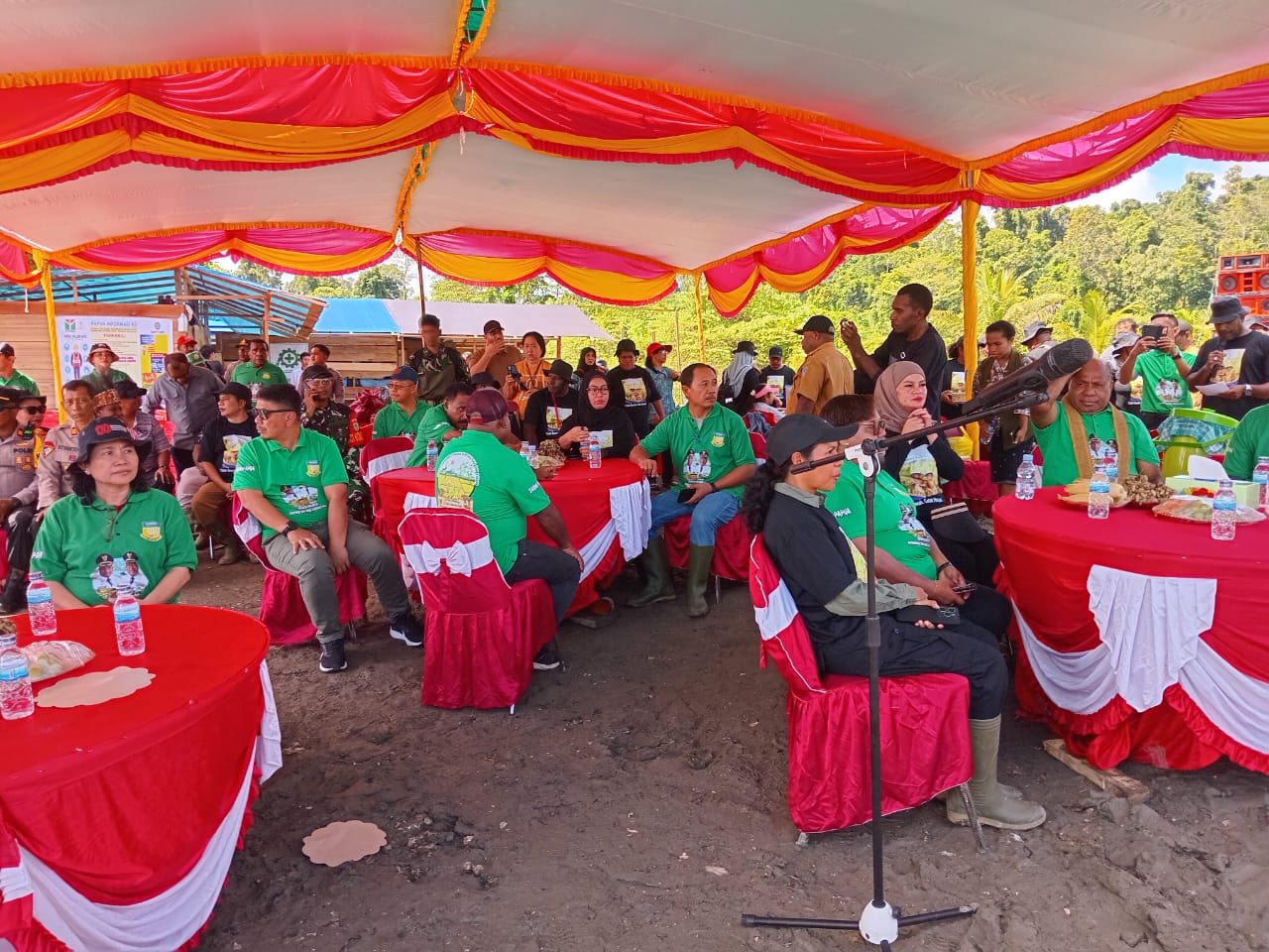 Kegiatan tersebut turut dihadiri oleh Bupati Sarmi Dominggus Catue, S.K.M., M.Kes., Wakil Bupati Sarmi Hj. Jumriati, S.H., jajaran Organisasi Perangkat Daerah (OPD) Provinsi Papua dan Kabupaten Sarmi, unsur Forkopimda, Kapolsek Bonggo IPTU Yustus Maudul, S.E., M.Si., para kepala distrik, tokoh adat, tokoh agama, serta tamu undangan lainnya.