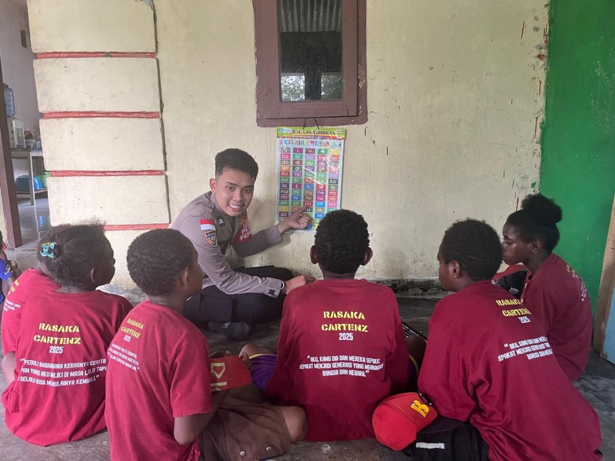 Papua – Satgas Siipar Polres Yahukimo menggelar kegiatan belajar mengajar bagi anak-anak di Jalan Sosial Matoa Distrik Dekai, Jumat (3/10/2025).