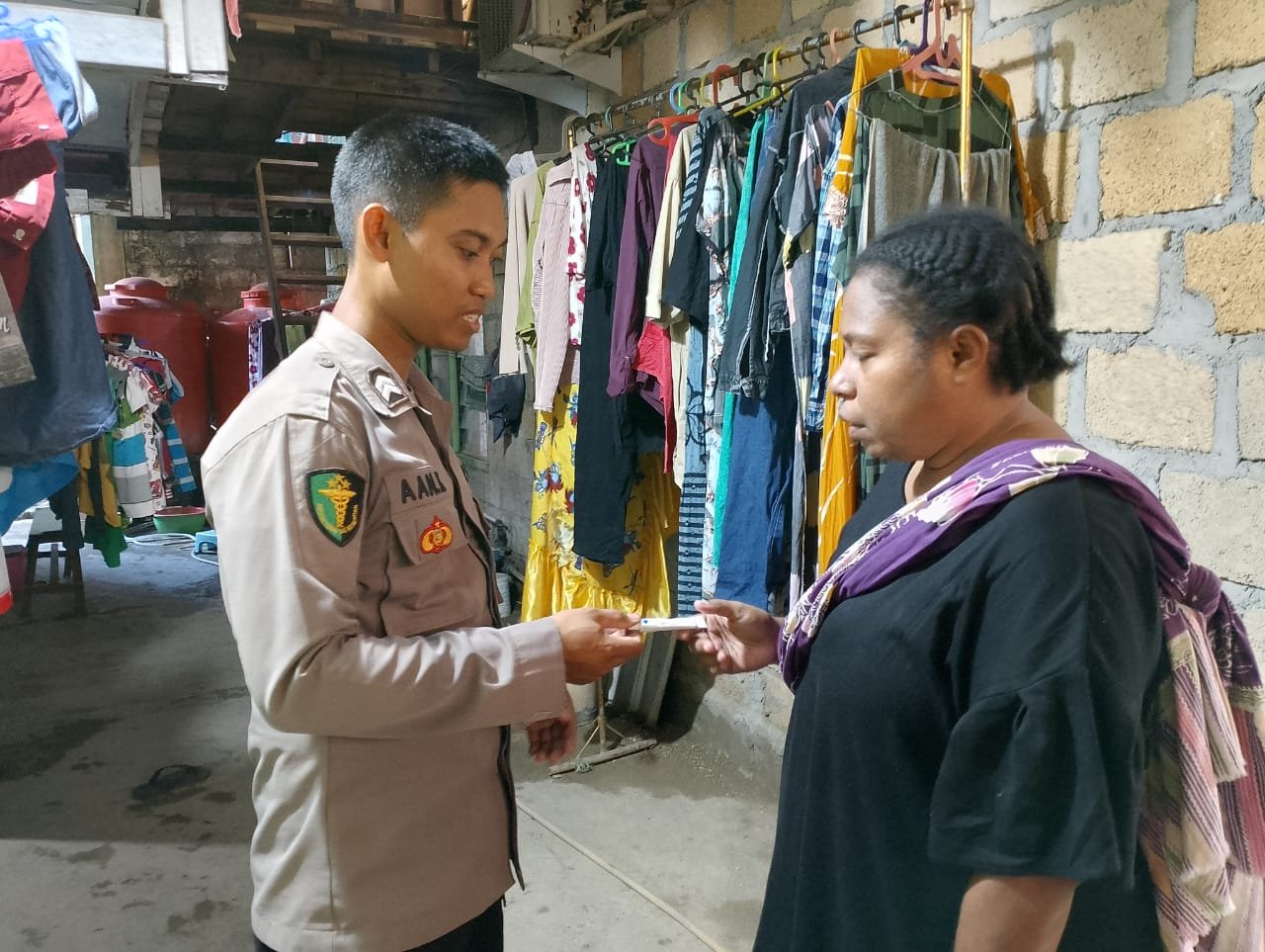 Papua – Subsatgas Keladi Sagu Operasi Rasaka Cartenz 2025 Polresta Jayapura Kota hadir menyambangi masyarakat di seputaran komplek kloofkamp jayapura, Senin (14/04) Siang.