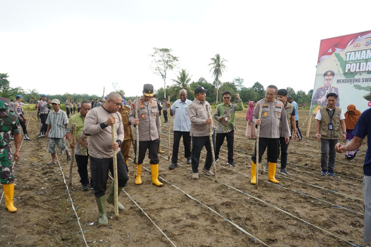Manokwari – 27 September 2025, Polda Papua Barat bersama jajaran dan instansi terkait melaksanakan kegiatan penanaman jagung di lahan kelompok tani Margo Mulyo dengan luas lahan yang disiapkan mencapai 33 hektare. Dari total luas tersebut, pada hari ini berhasil ditanami seluas 22 hektare, sementara 11 hektare sisanya masih menunggu kondisi lahan mengering.