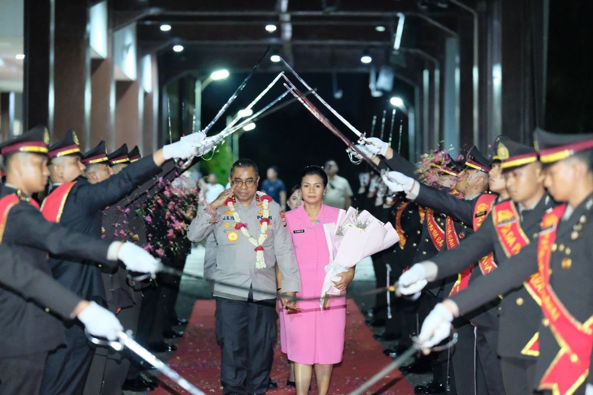 Manokwari – Kepolisian Daerah (Polda) Papua Barat menggelar parade penyambutan Kapolda Papua Barat yang baru, Brigjen Pol. Alfred Papare, S.I.K., beserta Ketua Bhayangkari Daerah Papua Barat, Ny. Riris Alfred, sekaligus farewell dan pengantar tugas Irjen Pol. Johnny Eddizon Isir, S.I.K., M.T.C.P., yang selanjutnya mengemban amanah sebagai Kepala Divisi Humas Polri, bersama istri Ny. Astrid Isir. Kegiatan tersebut berlangsung di Mapolda Papua Barat, Jumat (06/02/26).