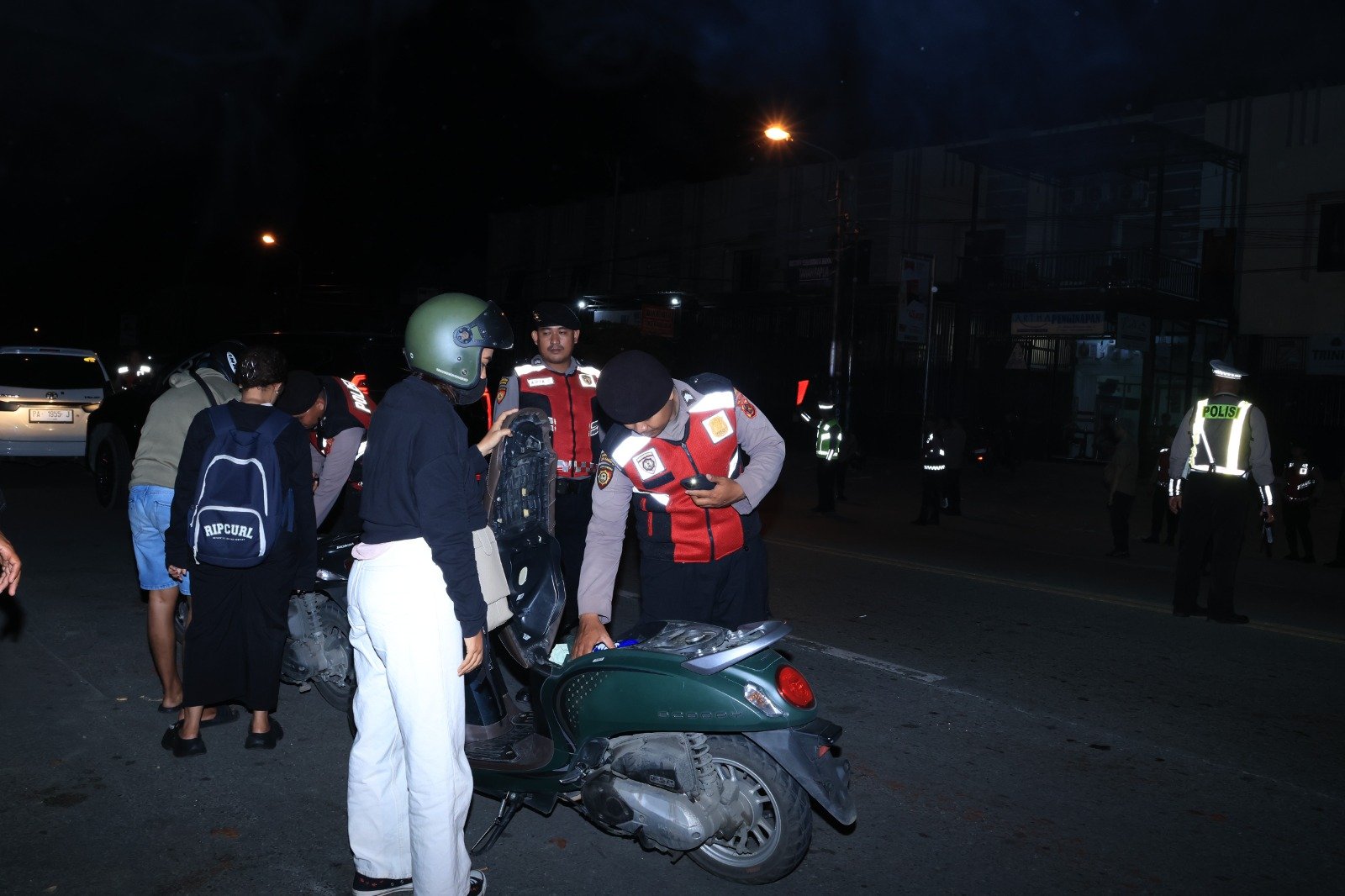 personel gabungan melaksanakan razia di wilayah perbatasan Waena dan Jembatan Merah Holtekamp sebagai bagian dari upaya pencegahan tindakan kriminal dan aktivitas yang berpotensi mengganggu stabilitas keamanan.