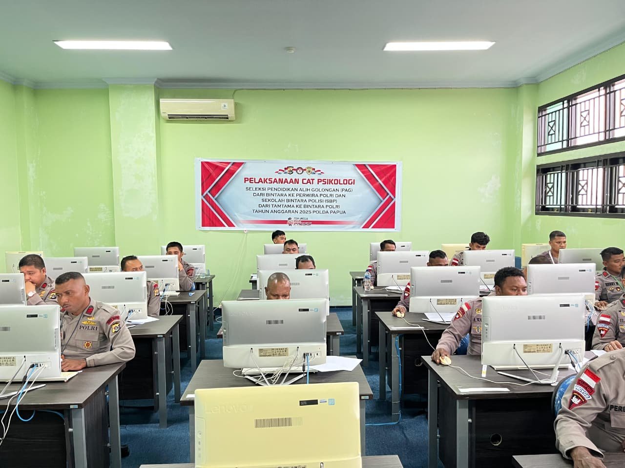 Papua – Polda Papua melalui Biro Sumber Daya Manusia (SDM) melaksanakan Computer Assisted Test (CAT) Psikologi Sekolah Bintara Polisi (SBP) dari Tamtama ke Bintara Polri Tahun Anggaran 2025. Kegiatan berlangsung di SMK YPK Diaspora Jayapura dan Kampus IAIN Buper Jayapura, Rabu (08/10).