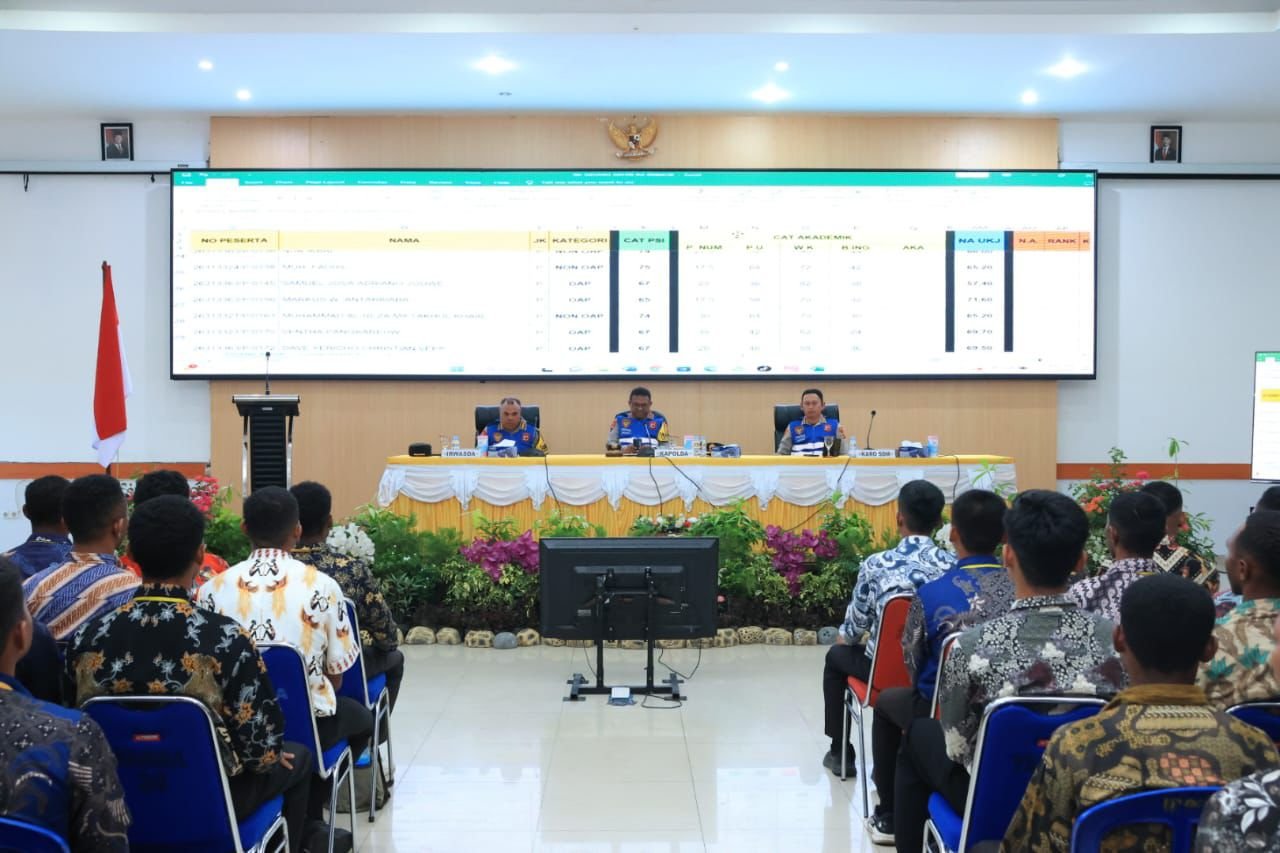 Sidang kelulusan tersebut dipimpin langsung oleh Kapolda Papua Irjen Pol. Petrus Patrige Rudolf Renwarin, S.H., M.Si., dan dihadiri oleh unsur pengawas serta pejabat utama Polda Papua. Kehadiran para pejabat ini menegaskan bahwa seluruh proses seleksi dilakukan dengan pengawasan ketat guna menjamin keadilan dan keterbukaan bagi seluruh peserta.