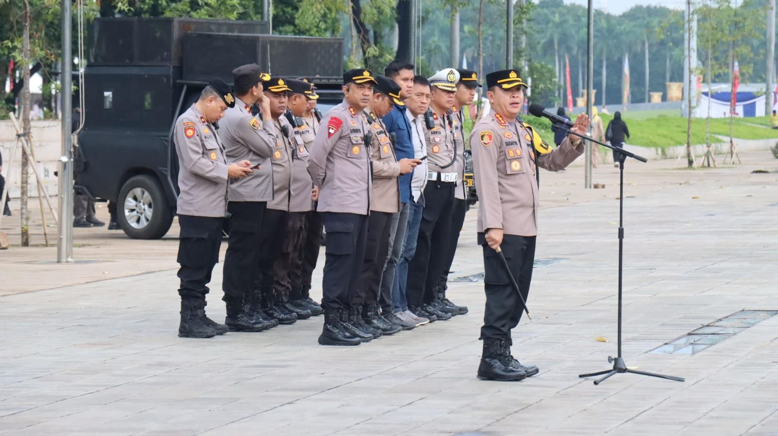 “Kekuatan pengamanan 1.075 personel,” ujar Kapolres Metro Jakarta Pusat Kombes Pol. Susatyo Purnomo Condro, Senin (3/11/25).
