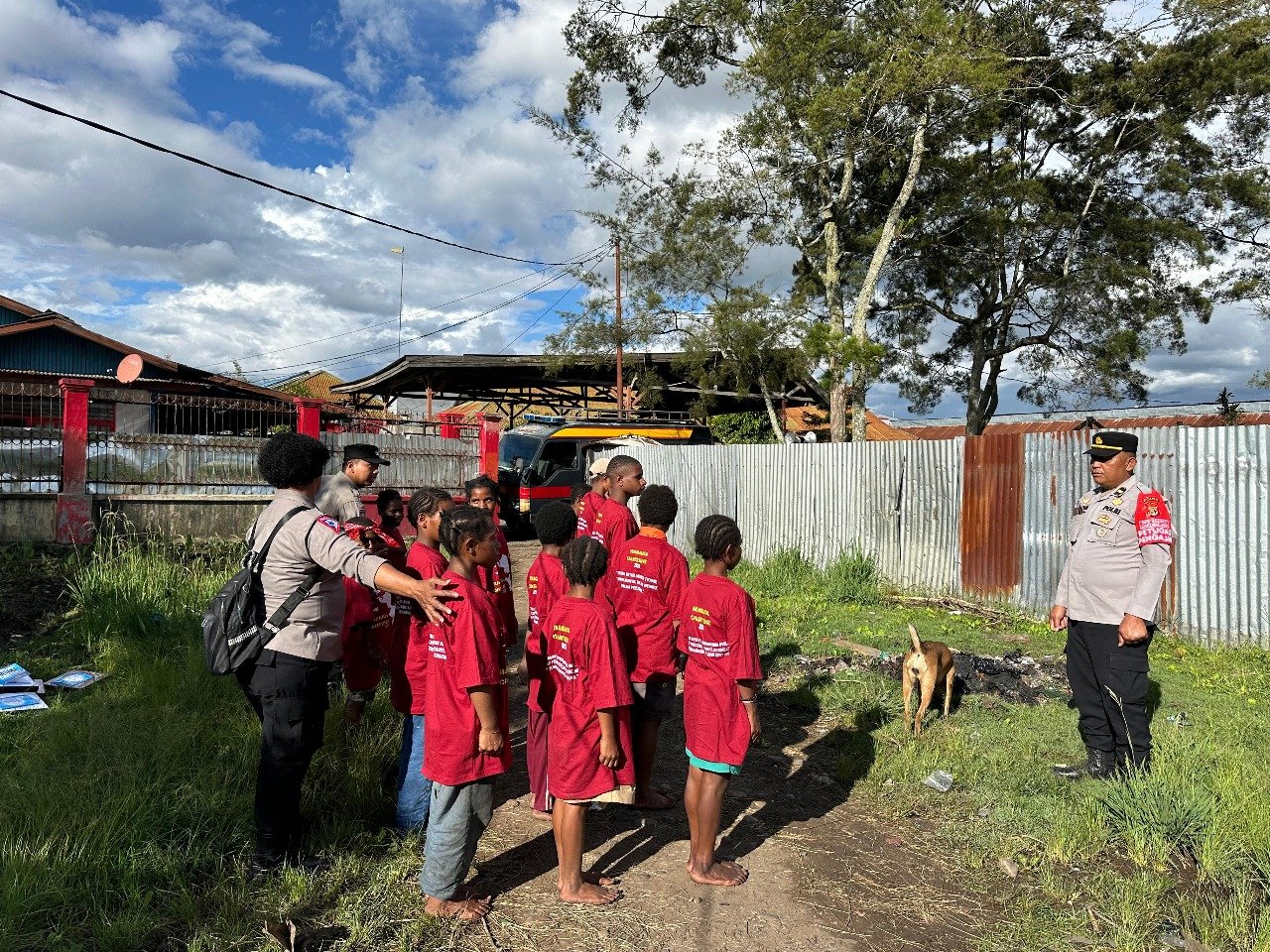 Papua – Dalam rangka pelaksanaan Operasi Rasaka Cartenz 2025, Subsatgas SI-IPAR Polres Jayawijaya melaksanakan kegiatan pembinaan dan pelatihan karakter terhadap anak-anak pengungsi asal Yali-Yahukimo yang berada di Rumah Pengungsi Jalan Bhayangkara, Distrik Wamena Kota, Kabupaten Jayawijaya. KAMIS. (29/05) PAGI.