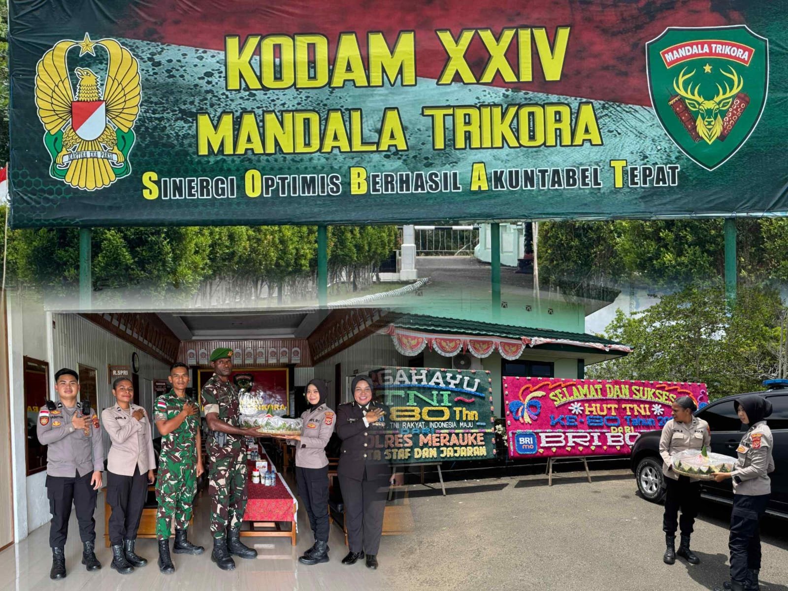 Papua – Kepolisian Resor (Polres) Merauke menunjukkan sinergi dan soliditas yang kuat bersama Tentara Nasional Indonesia (TNI) melalui kegiatan penyerahan tumpeng secara simbolis dalam rangka memperingati Hari Ulang Tahun (HUT) ke-80 TNI, bertempat di Markas Komando Daerah (Makodam) XXIV/Mandala Trikora, Distrik Tanah Miring, Kabupaten Merauke, Minggu (5/10/2025).