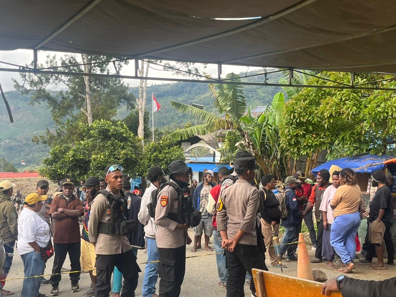 Papua – Personel Regu II Siaga Polres Tolikara yang dipimpin Kasubbagbekpal Bag Log Ipda Renardus Sekenyap didampingi Kasiwas Polres Tolikara Ipda Charles M. Mansumber melaksanakan patroli dialogis dalam rangka cipta kondisi keamanan dan ketertiban masyarakat (Kamtibmas) di wilayah Distrik Karubaga, Kabupaten Tolikara.