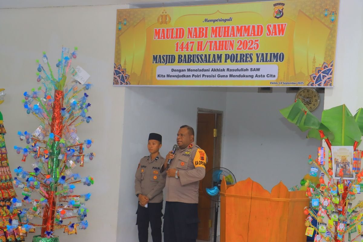 Sementara itu, Kasat Binmas Polres Yalimo, Aiptu La Ode Abdul Syukur, menyampaikan bahwa peringatan Maulid Nabi Muhammad SAW juga merupakan sarana untuk memperkuat iman dan takwa, serta mempererat silaturahmi antara Polri, tokoh agama, tokoh adat, dan masyarakat.