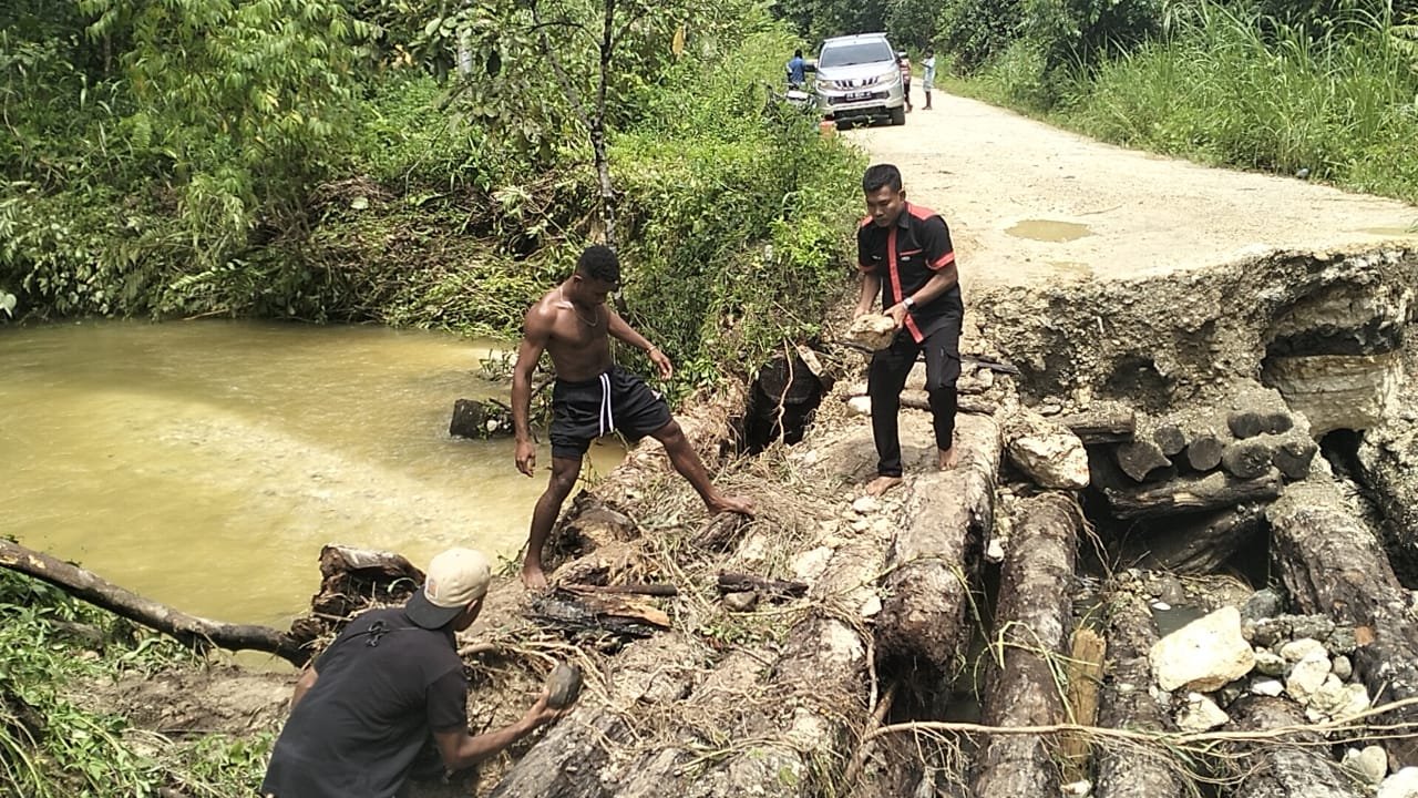 Papua – Pada hari Sabtu tanggal 22 November 2025, Pukul 10.00 wit, Kapolsek Demta Ipda Ignatius Sepbiantoro, S.H. bersama Ps. Kasium Polsek Demta Bripka Chairul Marwan dan bergerak cepat menanggapi laporan warga terkait jembatan yang putus di KM 09 Distrik Demta. Kondisi tersebut membuat akses jalan tidak bisa dilalui, sehingga jalur menuju wilayah Demta terputus.