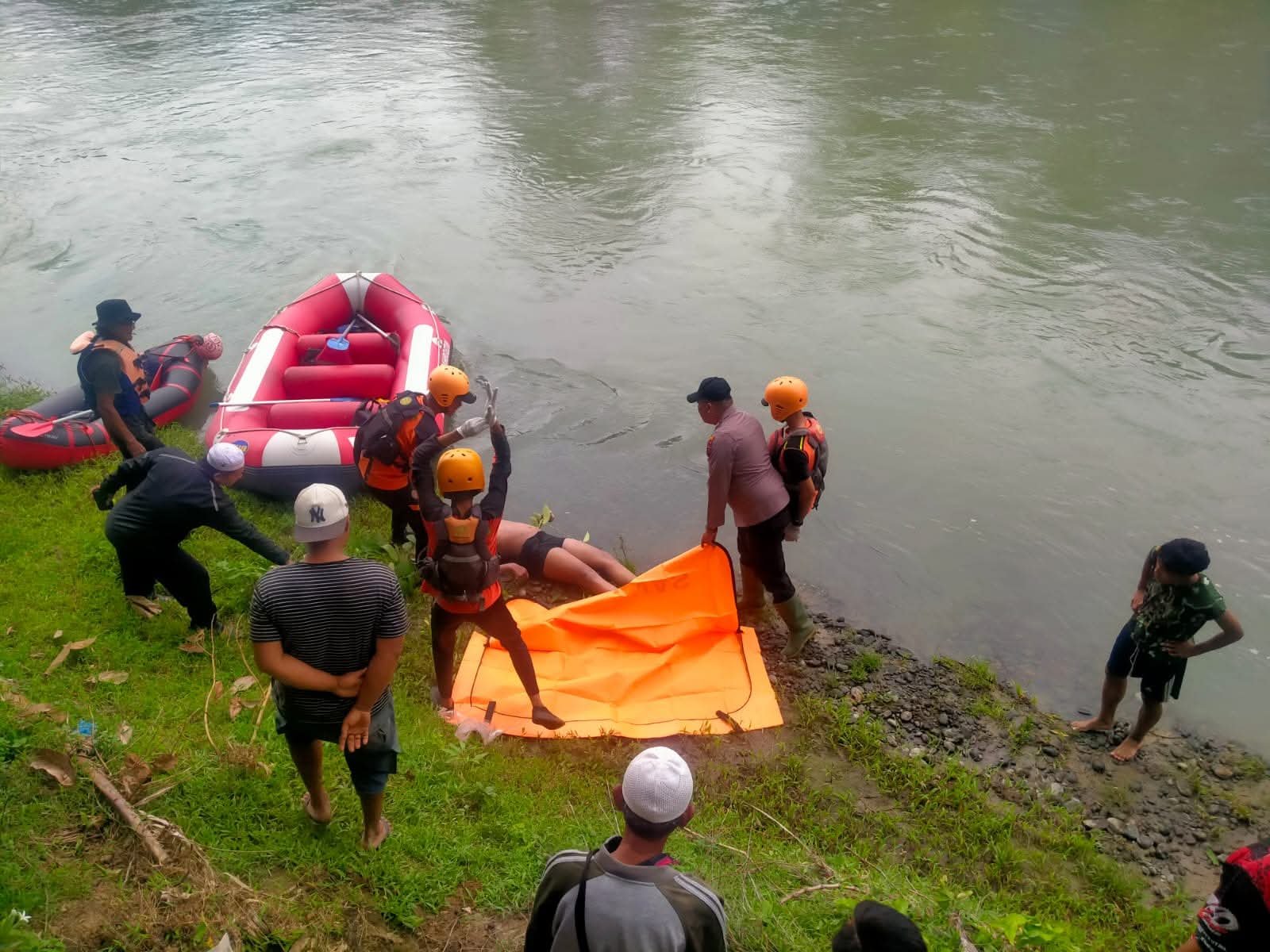 “Korban datang bersama tujuh temannya. Saat mandi di sungai, korban diduga tidak mengetahui kedalaman serta derasnya arus, sehingga terbawa arus dan tenggelam”, ujar Kapolsek.