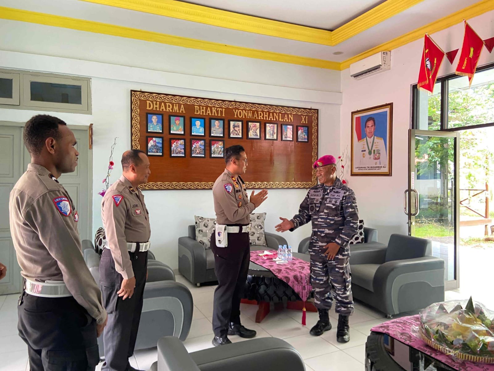 Suasana penyerahan berlangsung dalam suasana penuh keakraban dan kebersamaan, mencerminkan keharmonisan antara TNI dan Polri di wilayah Papua Selatan.