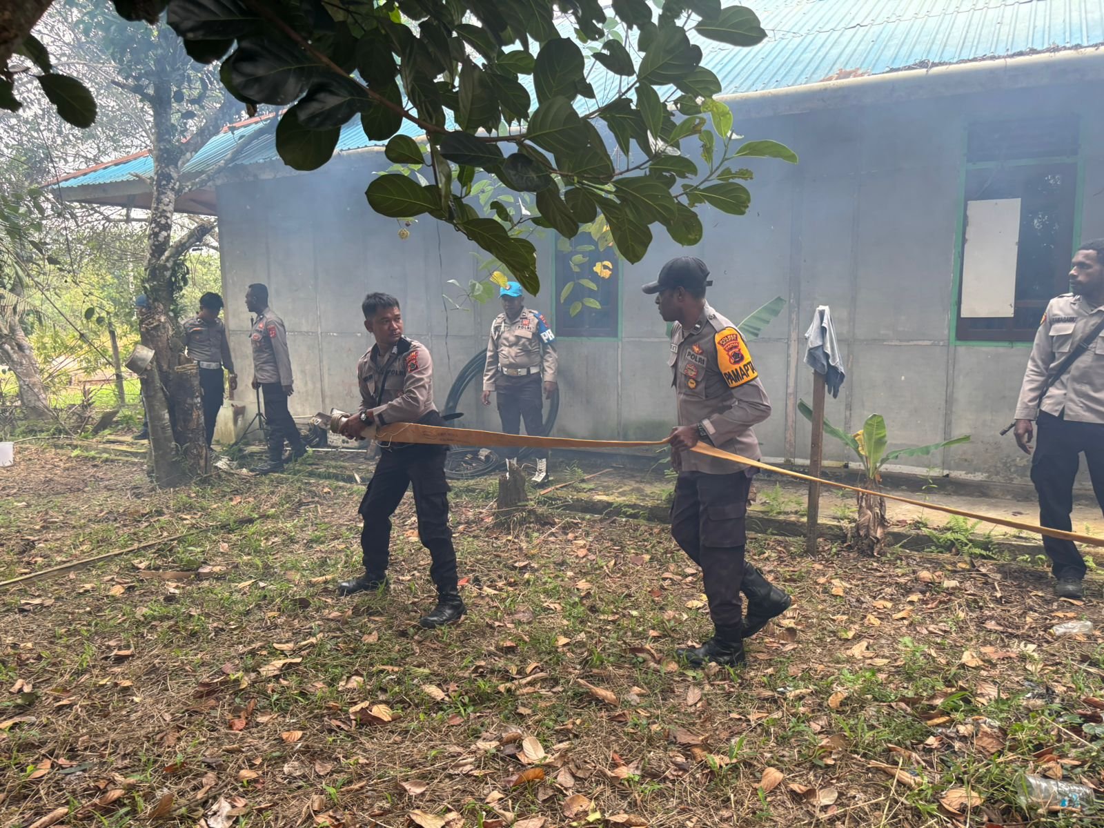 Guna mencegah api menjalar dan membahayakan keselamatan warga, personel Polres Mappi bersama Badan Penanggulangan Bencana Daerah (BPBD) Kabupaten Mappi bergerak cepat menuju lokasi untuk melakukan upaya pemadaman.