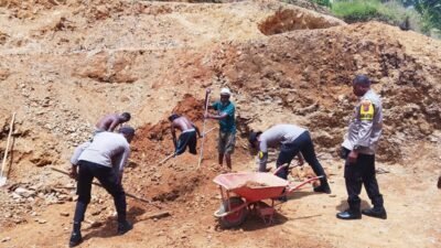 Bhabinkamtibmas Polres Tolikara Turun Langsung Bantu Warga Gotong Royong Di Desa Nanggulurik