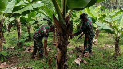 Personel Kodim 1310/Bitung Lakukan Perawatan Tanaman dan Ternak di Lokasi Kompi Produksi