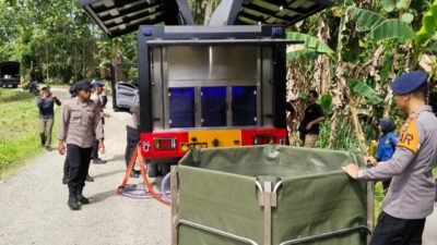 Papua – Satuan Brimob Polda Papua melaksanakan layanan bantuan air bersih layak konsumsi menggunakan Mobil…