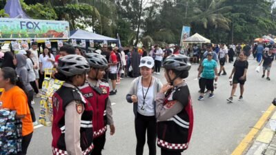 Polwan Anggrek Hitam Ditsamapta Polda Papua Gelar Patroli Sepeda di Area Car Free Day Jayapura Selatan