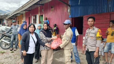 Sat Binmas Polres Tolikara Dampingi Dinas Sosial Salurkan Bantuan Pangan untuk Korban Kebakaran di Karubaga