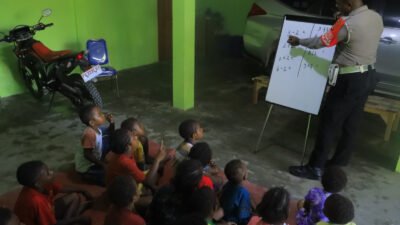 Satgas Si-Ipar Operasi Rasaka Cartenz 2025 Bantu Anak-anak di Kabupaten Yalimo Belajar Berhitung Penjumlahan