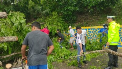 Sinergi Cepat Polri dan Warga Bersihkan Pohon Tumbang di Skyland Jayapura