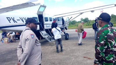 Sinergitas TNI-POLRI Amankan Kedatangan Dan Keberangkatan Pesawat Di Bandara Kimaam