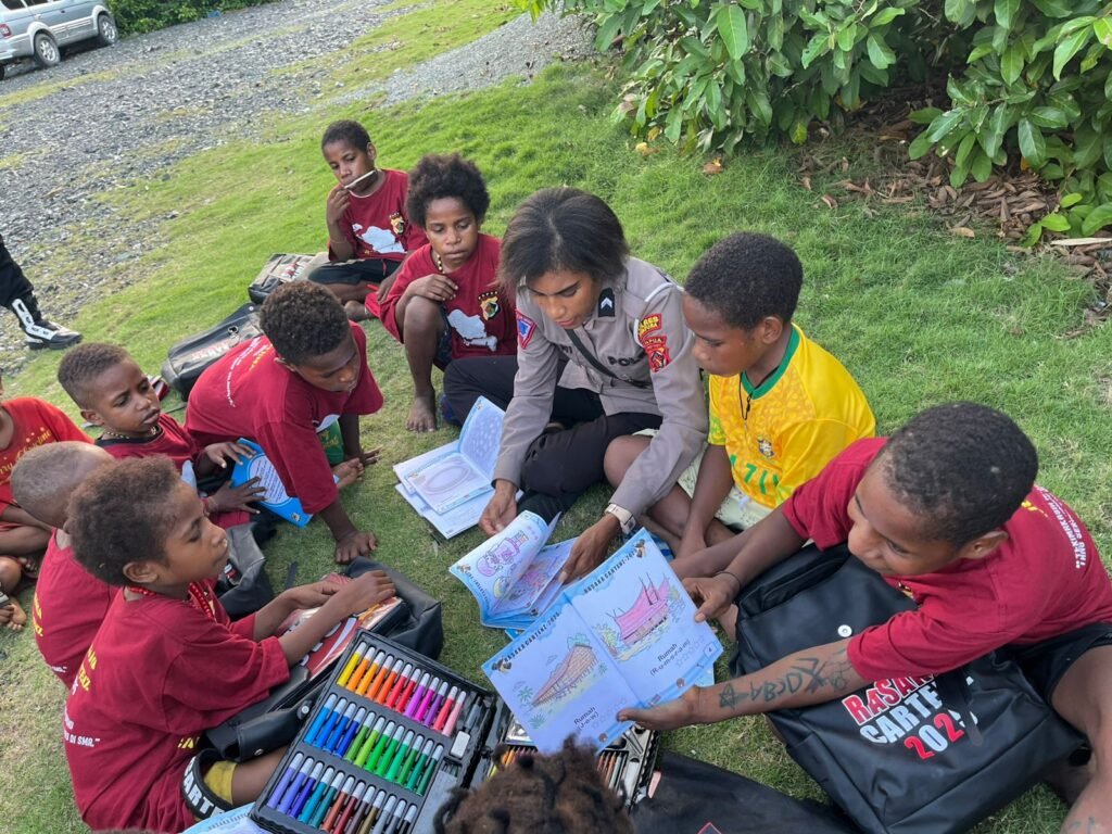 Subsatgas si-ipar polres jayapura ajar anak dan mama-mama di kampung doyo baru