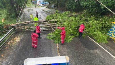 Tim SAR Ditsamapta Polda Papua Tangani Pohon Tumbang di Tanjakan Pospol Lantas Vihara Skeylen