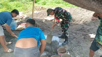 Warga dan Babinsa Turun Bantu Proses Pekerjaan
