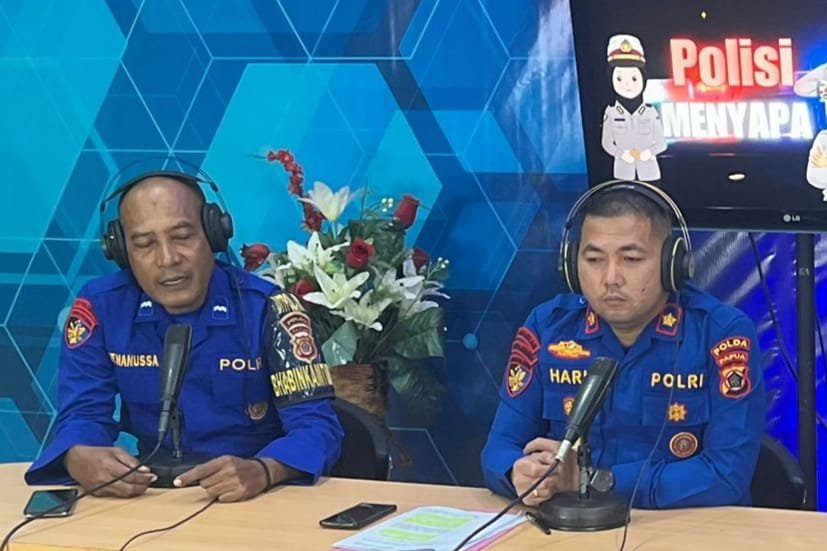 Kegiatan dialog interaktif bertema “Kesiapsiagaan Personel dan Peralatan Penanganan Bencana di Papua” ini menghadirkan narasumber Ps. Wadir Polairud Polda Papua, Kompol R. Achmad Hari Junianto, S.Kom., M.H., dan Ps. Panit SAR Binmas Air, Aipda Jafar Hehanussa yang dipandu oleh presenter Arul Firmansyah.