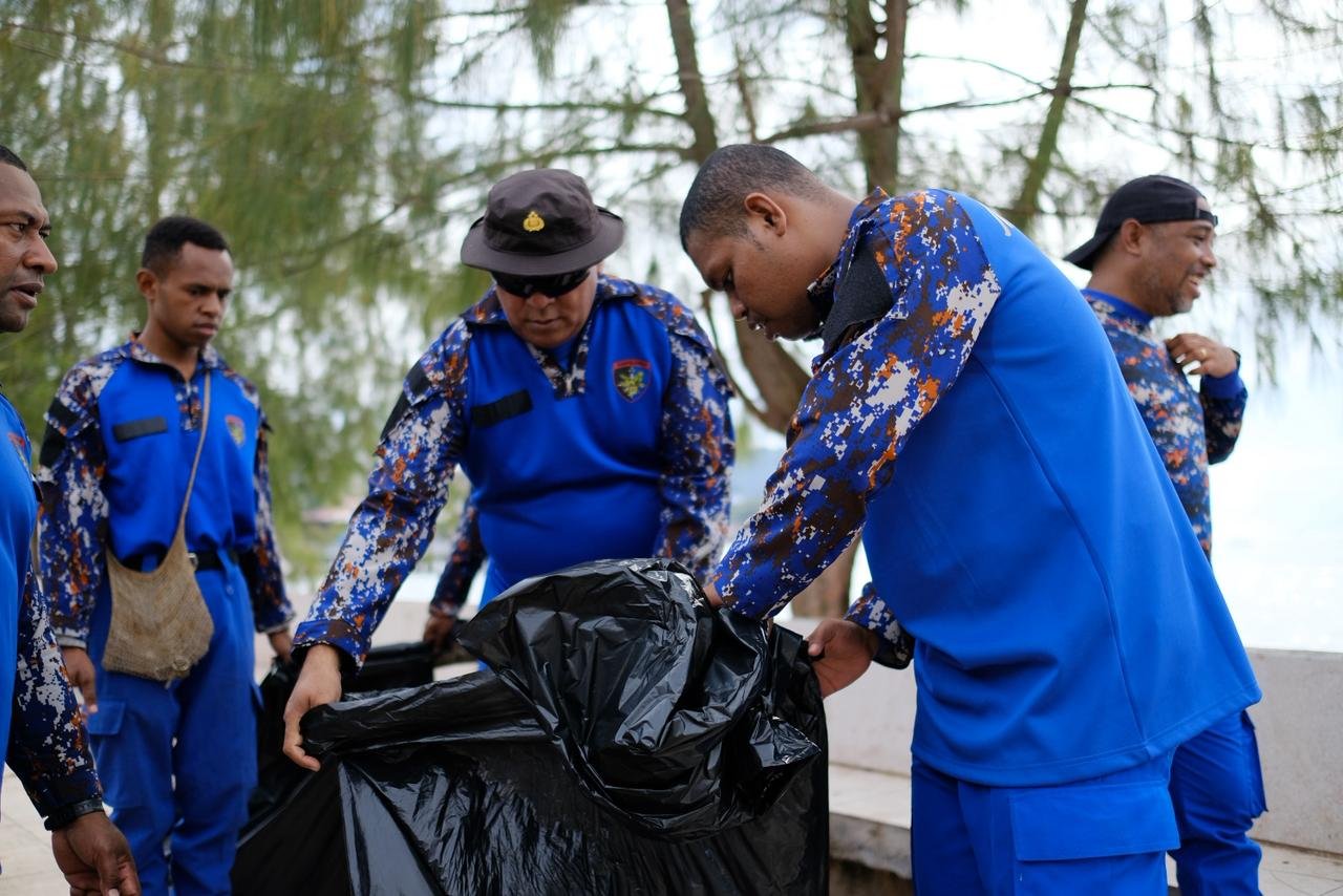Pantai Dok II yang menjadi salah satu destinasi favorit masyarakat Jayapura dipilih sebagai lokasi kegiatan guna memastikan area publik tetap terjaga kebersihan, kenyamanan, dan keindahannya.